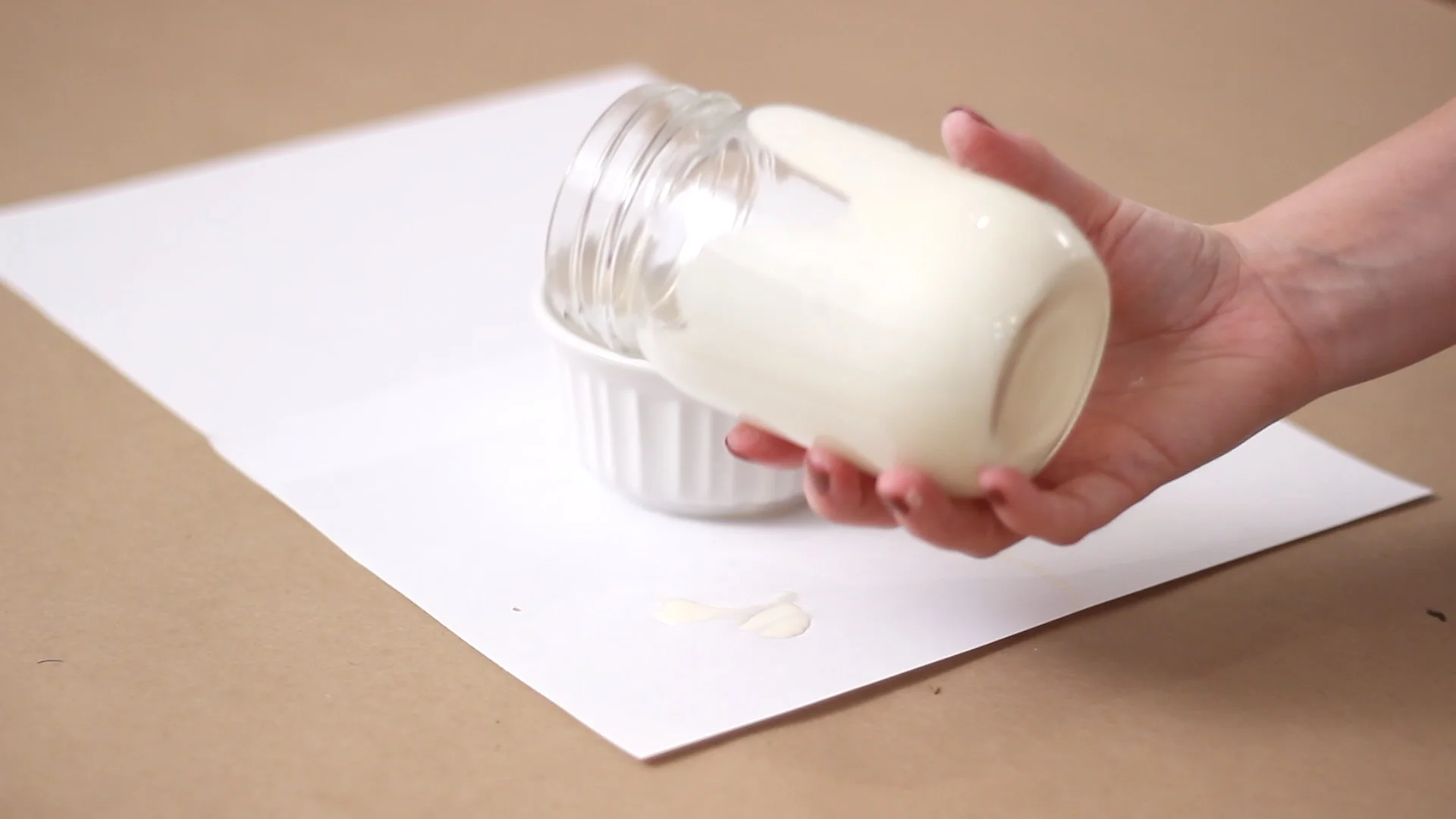 Pour a bit of watered down paint into each jar and swirl it around until the entire inside of the jar is covered.