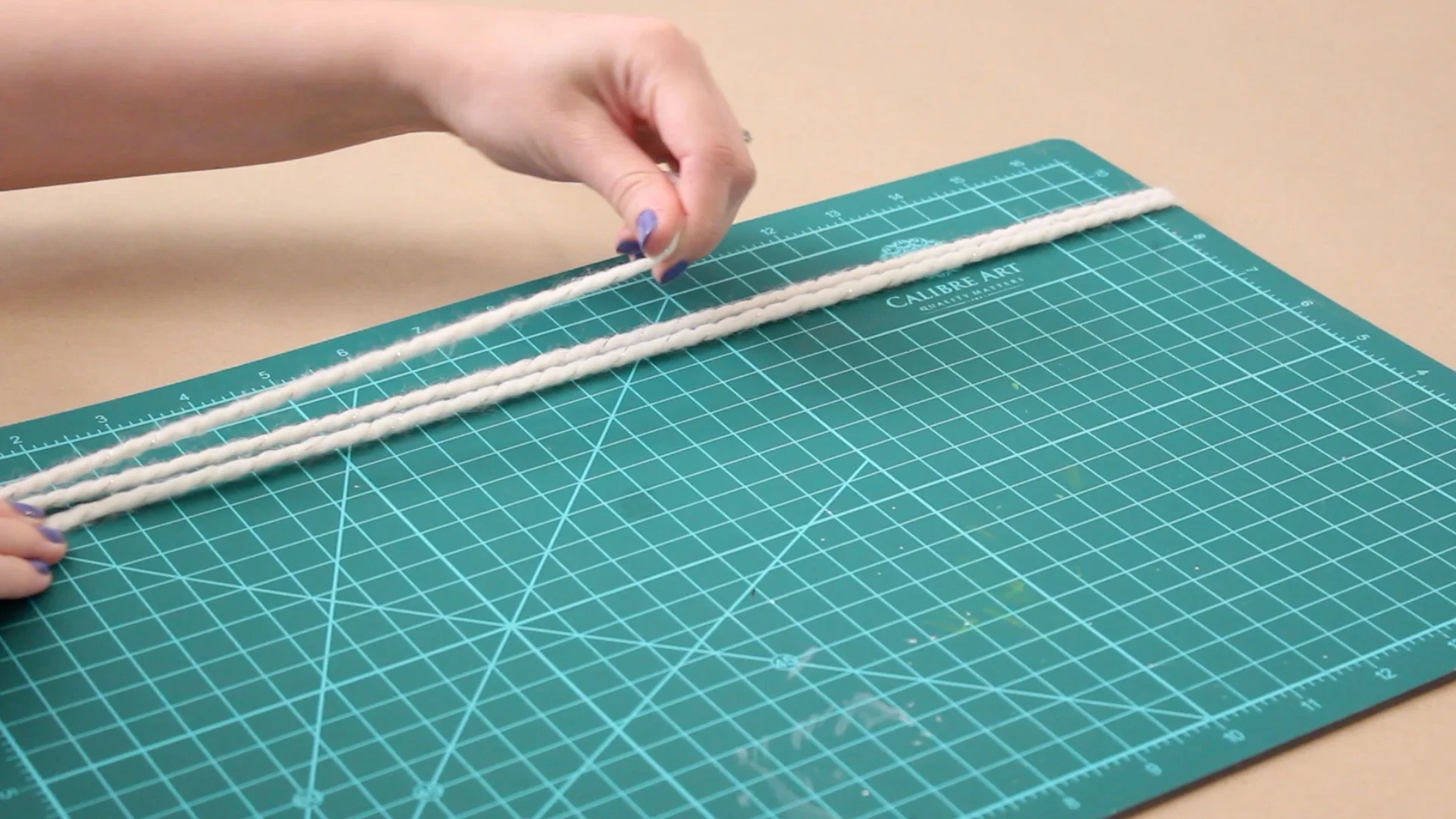 Take one color of yarn and wrap it around something that is about 1.5 feet long. I'm using this mat but you can also cut out a piece of cardboard to be the correct length. Continue wrapping it around multiple times.