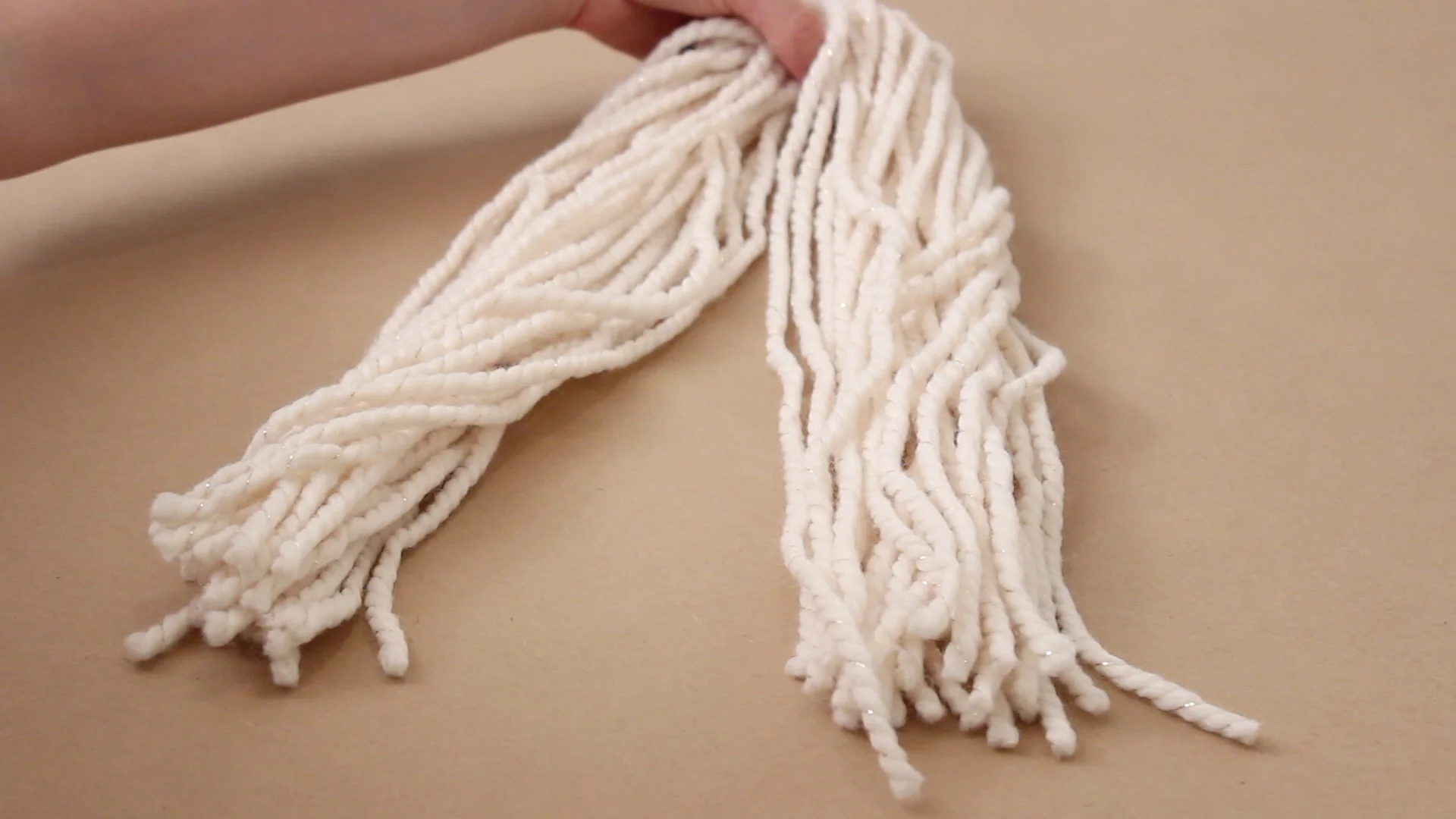 Grab 2 pieces of yarn and fold them in half so you have a loop at the top.