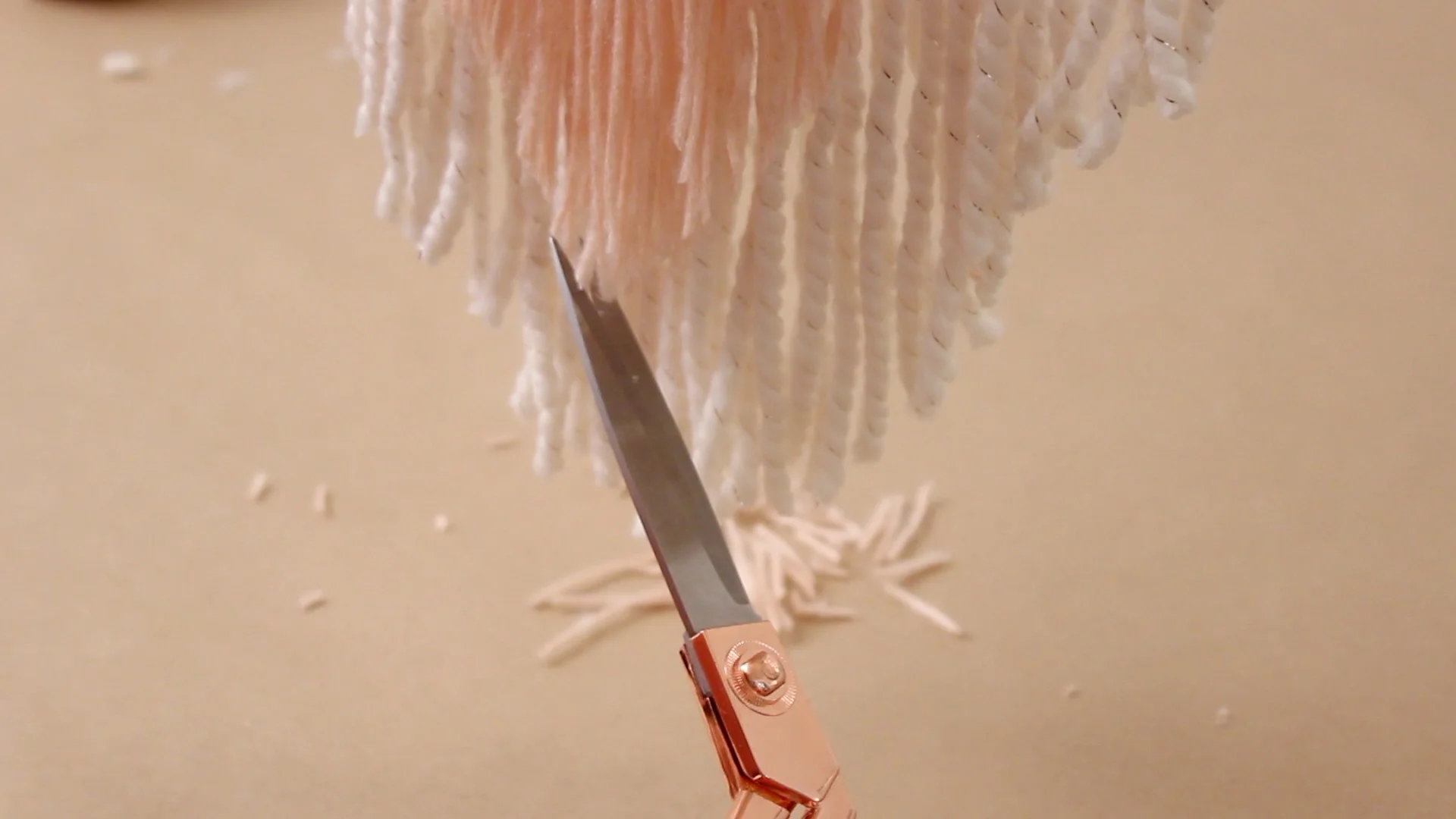 Cut across the yarn at the bottom. Repeat this same process with your second color of string.