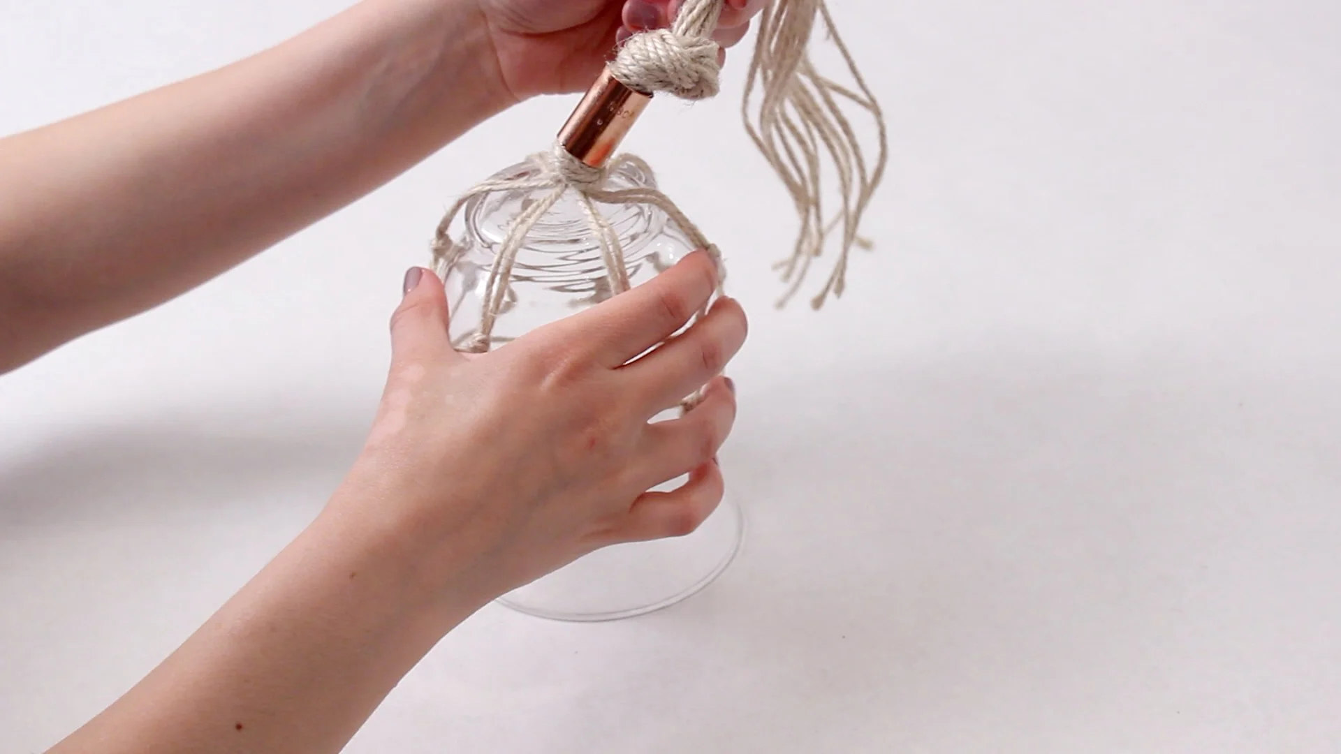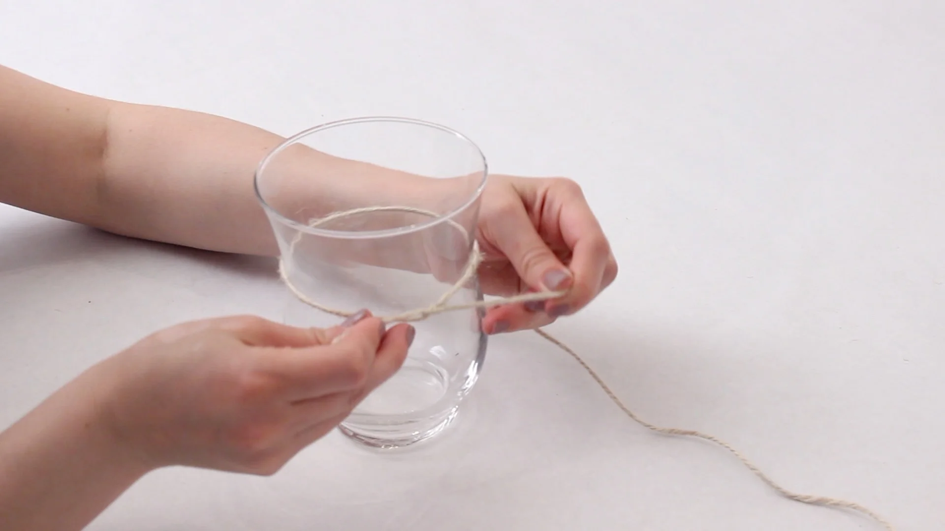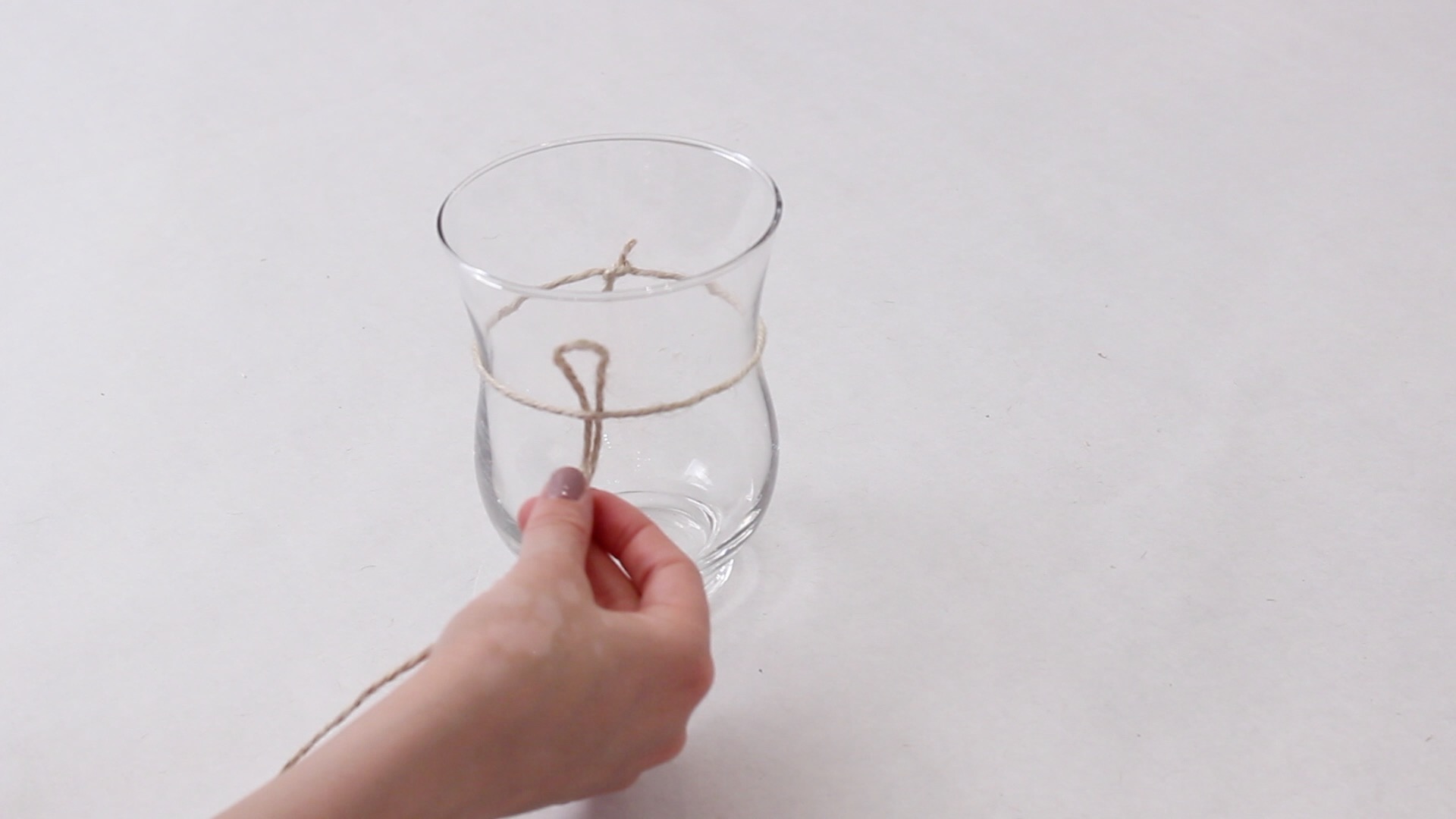 Tie a piece of twine around your jar. Double knot it and snip the ends with some scissors.