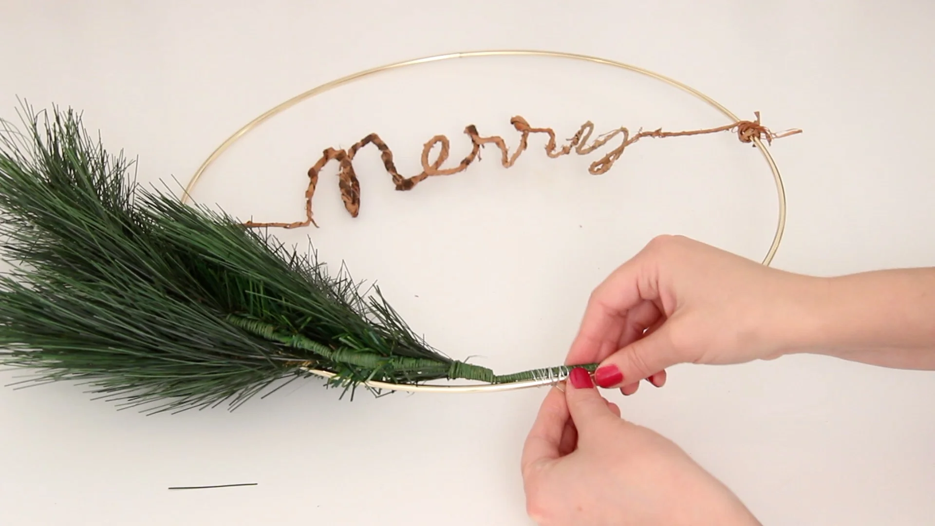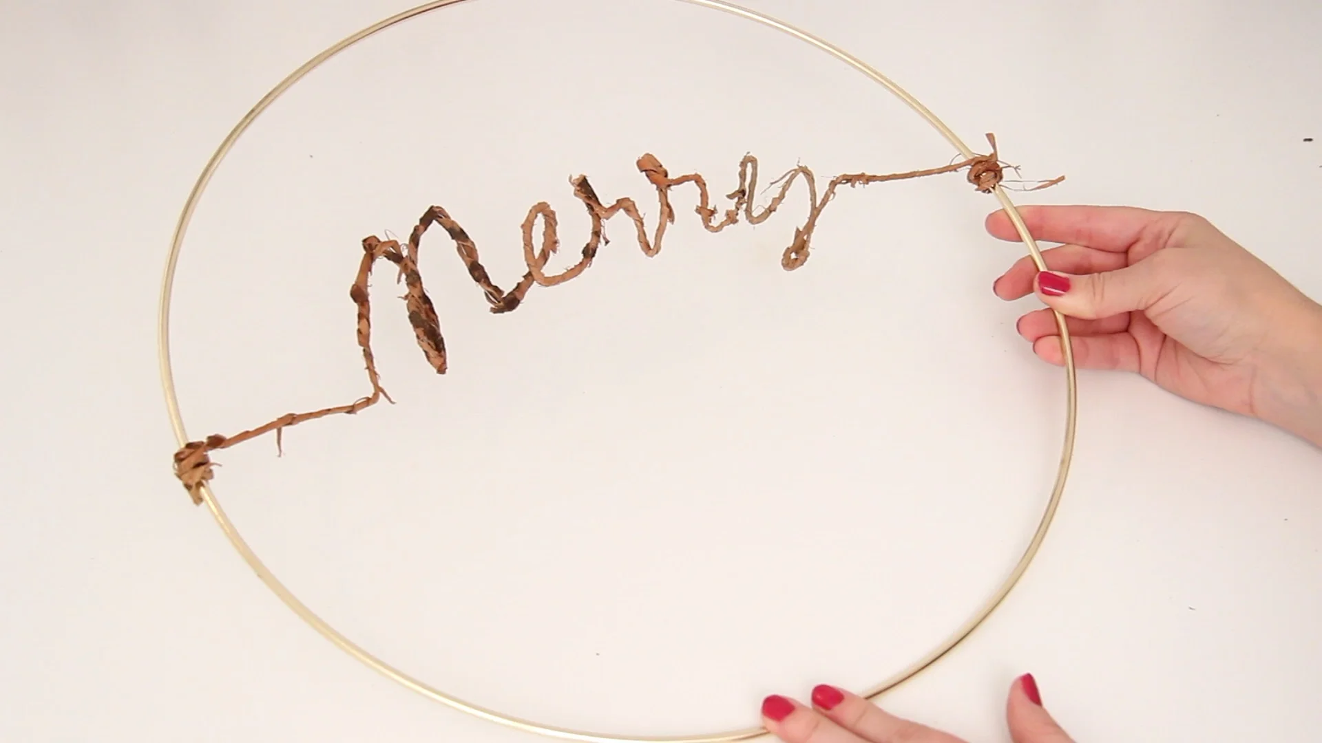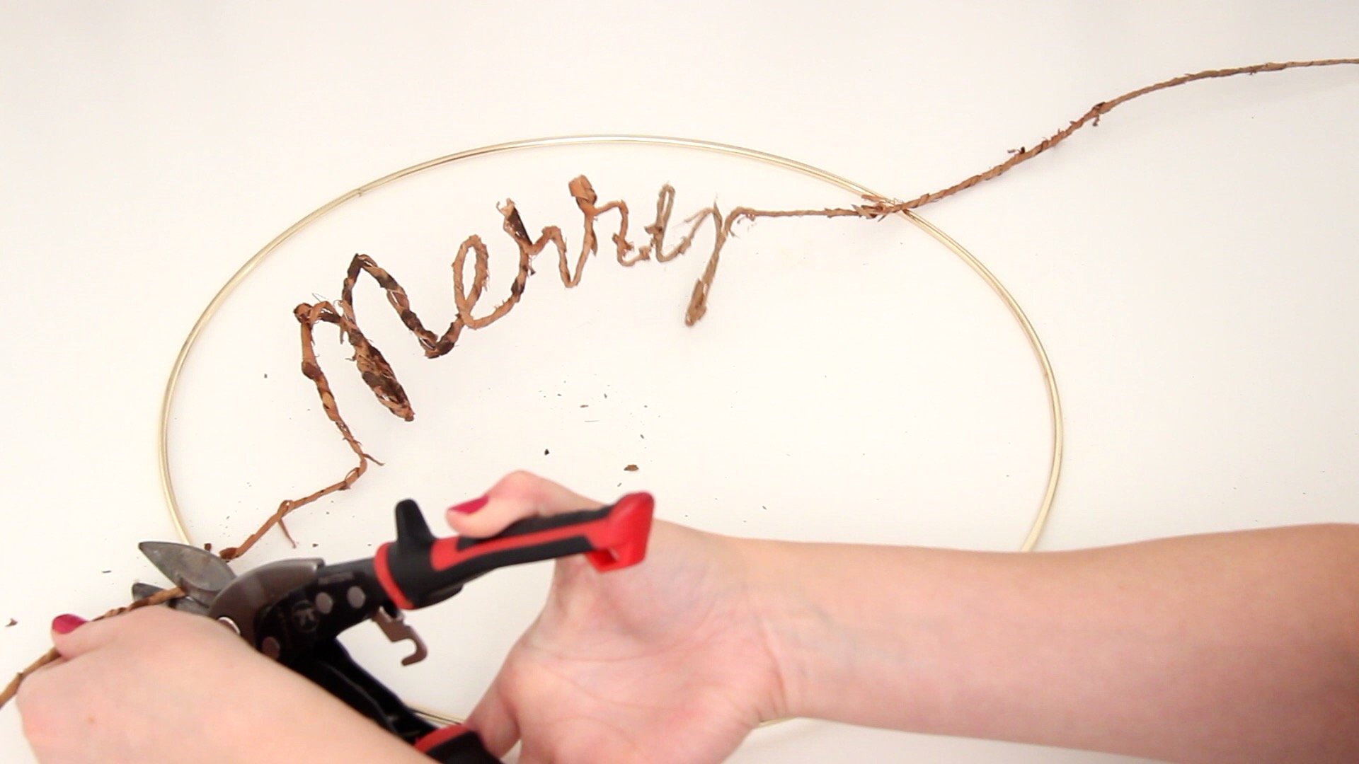 Center the word inside of your hoop, and then wrap the ends of the wire around the hoop a few times. Use wire cutters to cut off the excess.
