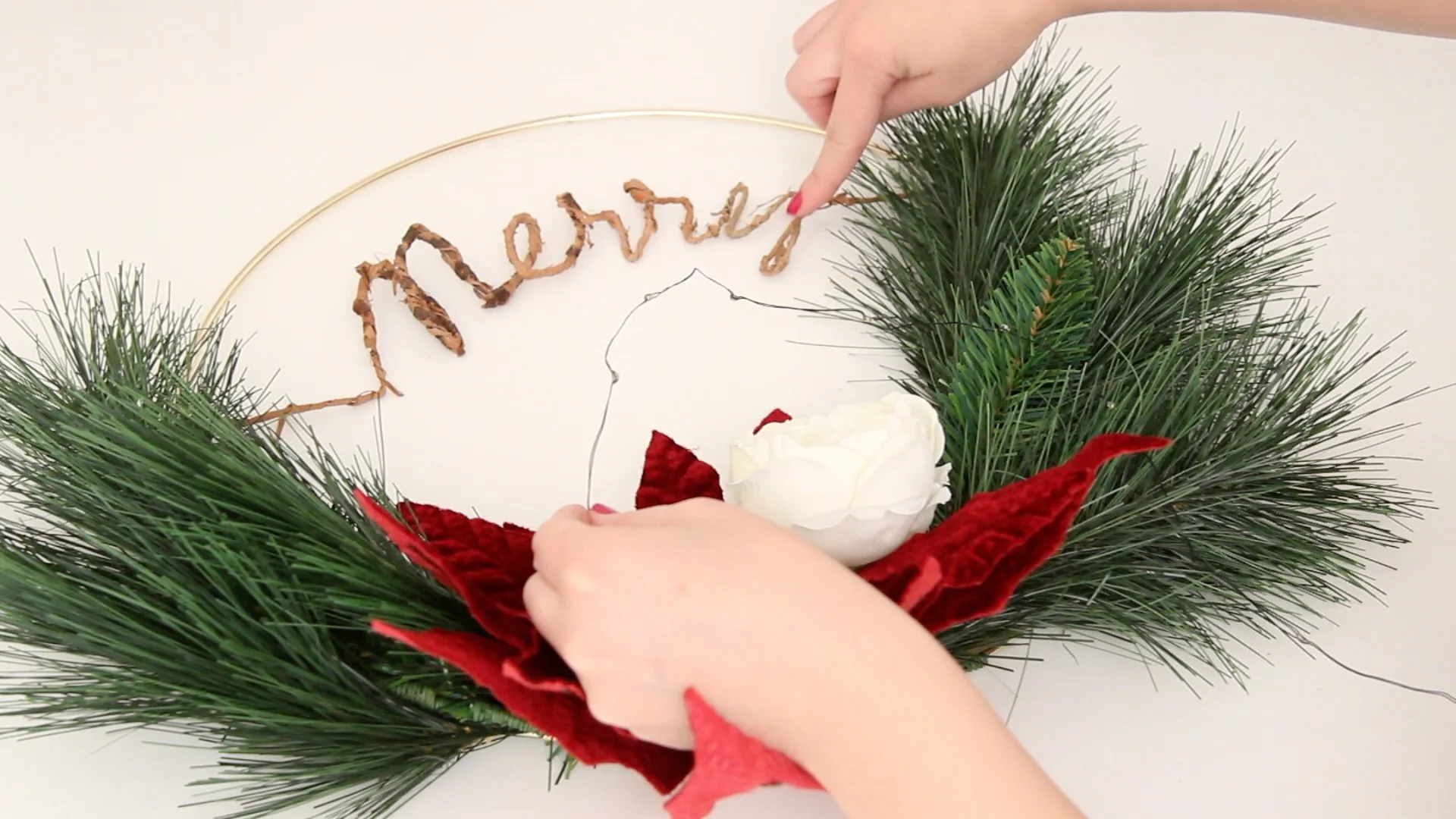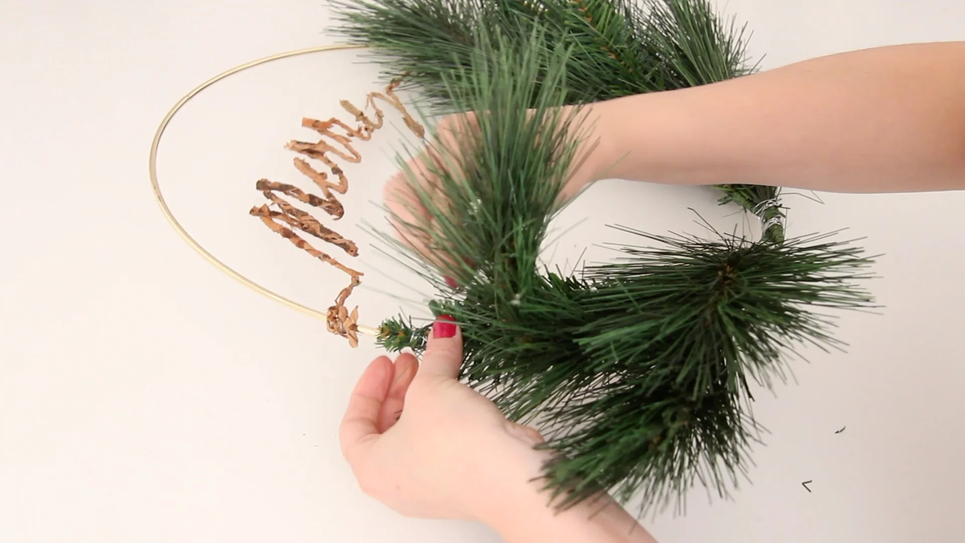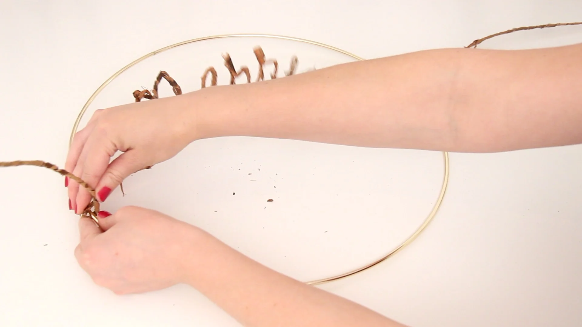 Center the word inside of your hoop, and then wrap the ends of the wire around the hoop a few times. Use wire cutters to cut off the excess.
