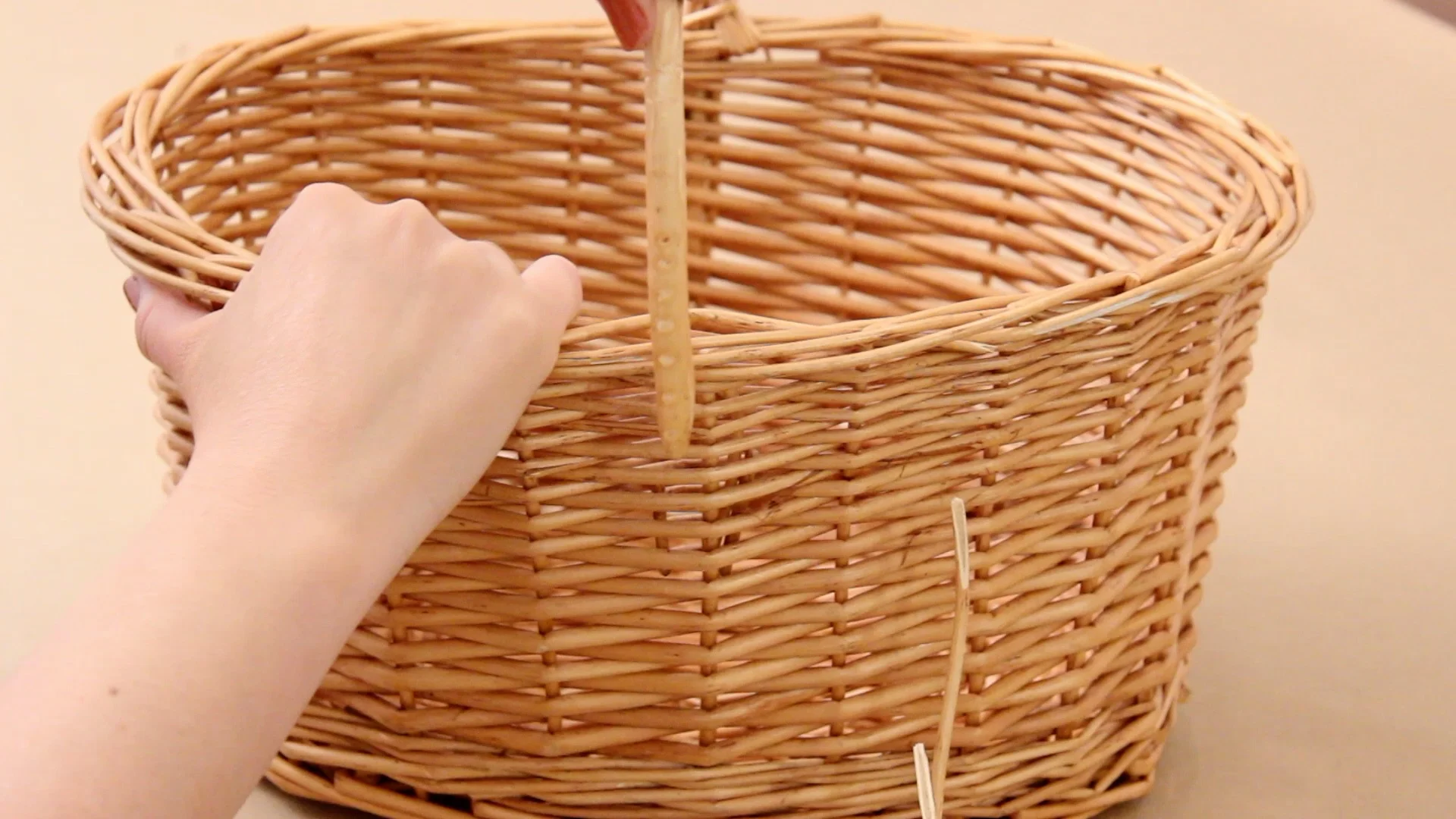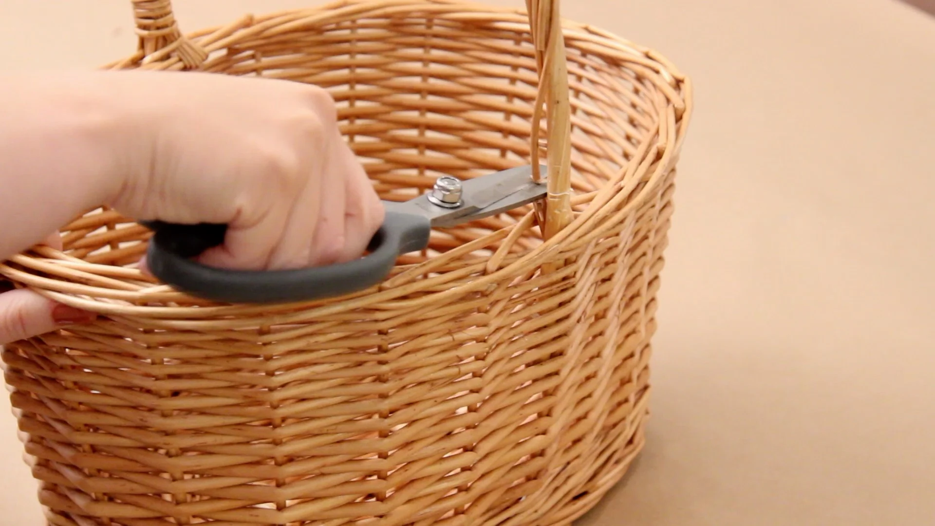 To make my basket work for this project, I just had to find a way to remove the handle. I found that I could easily cut right through the pieces of wood that were holding it together with a pair of scissors.