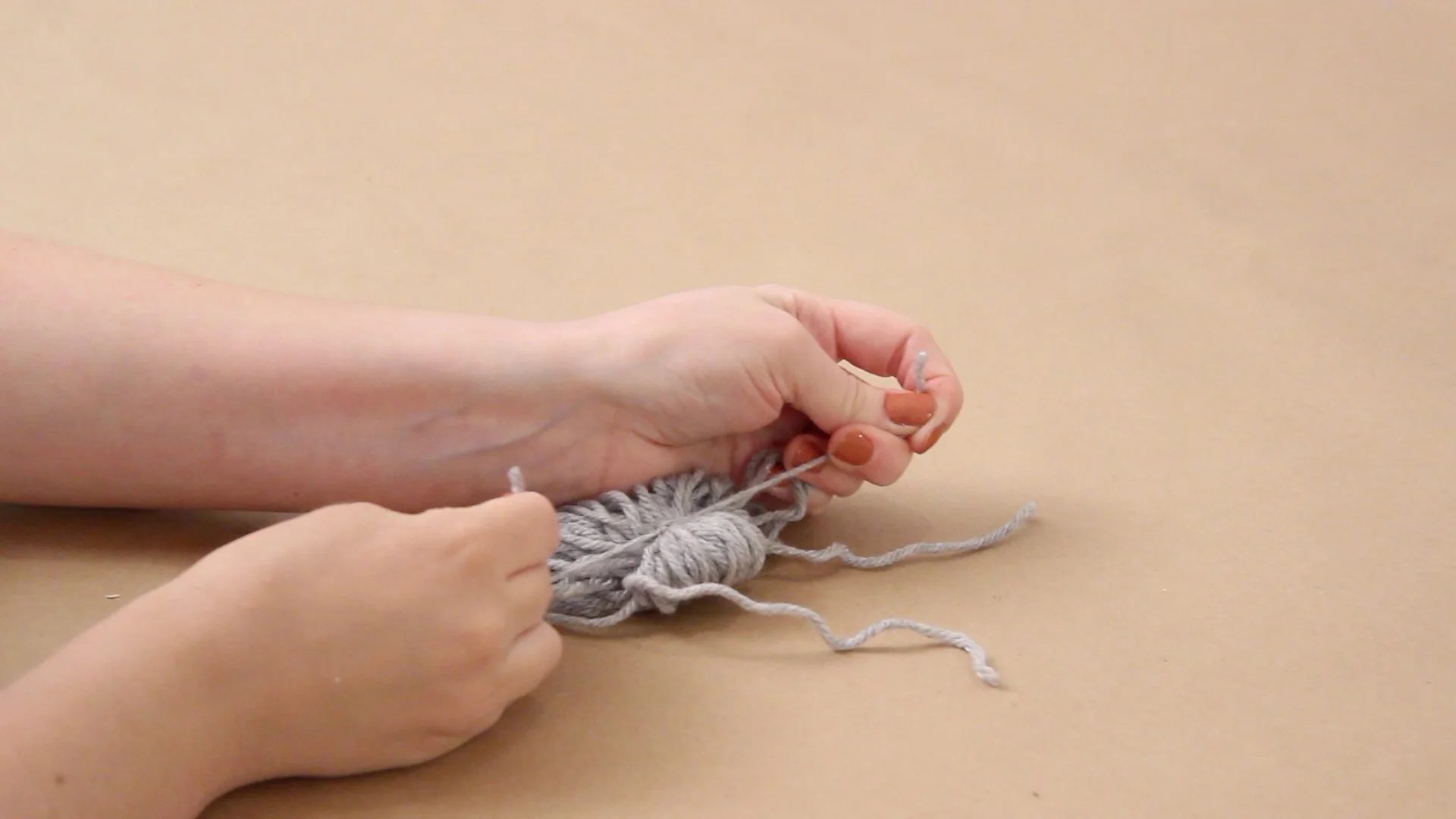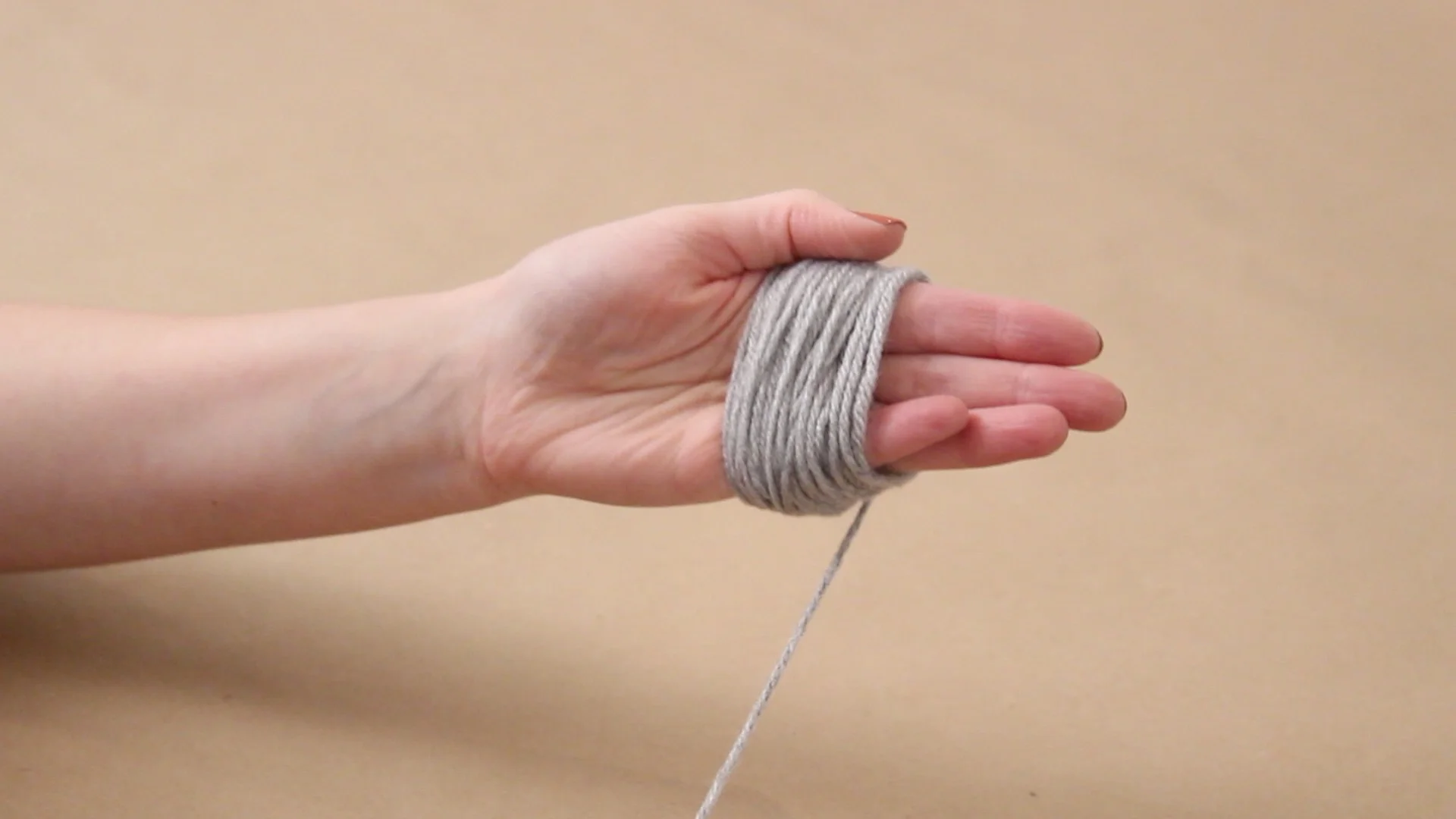 Slide the extra piece of yarn under the yarn on your hand, and then use it to pull the entire bunch off of your hand.