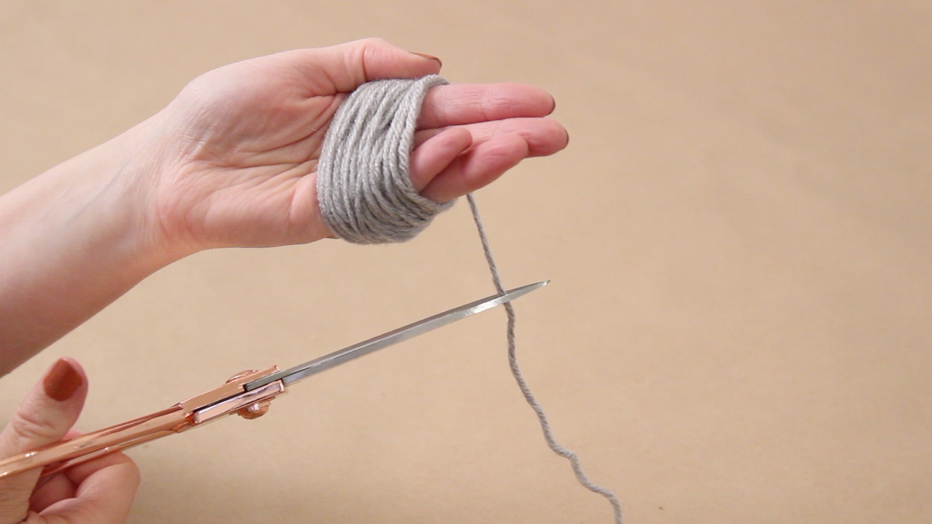 Once you're happy with the size of the tassel, cut the yarn. Cut one more piece of yarn that is about 6 inches long.