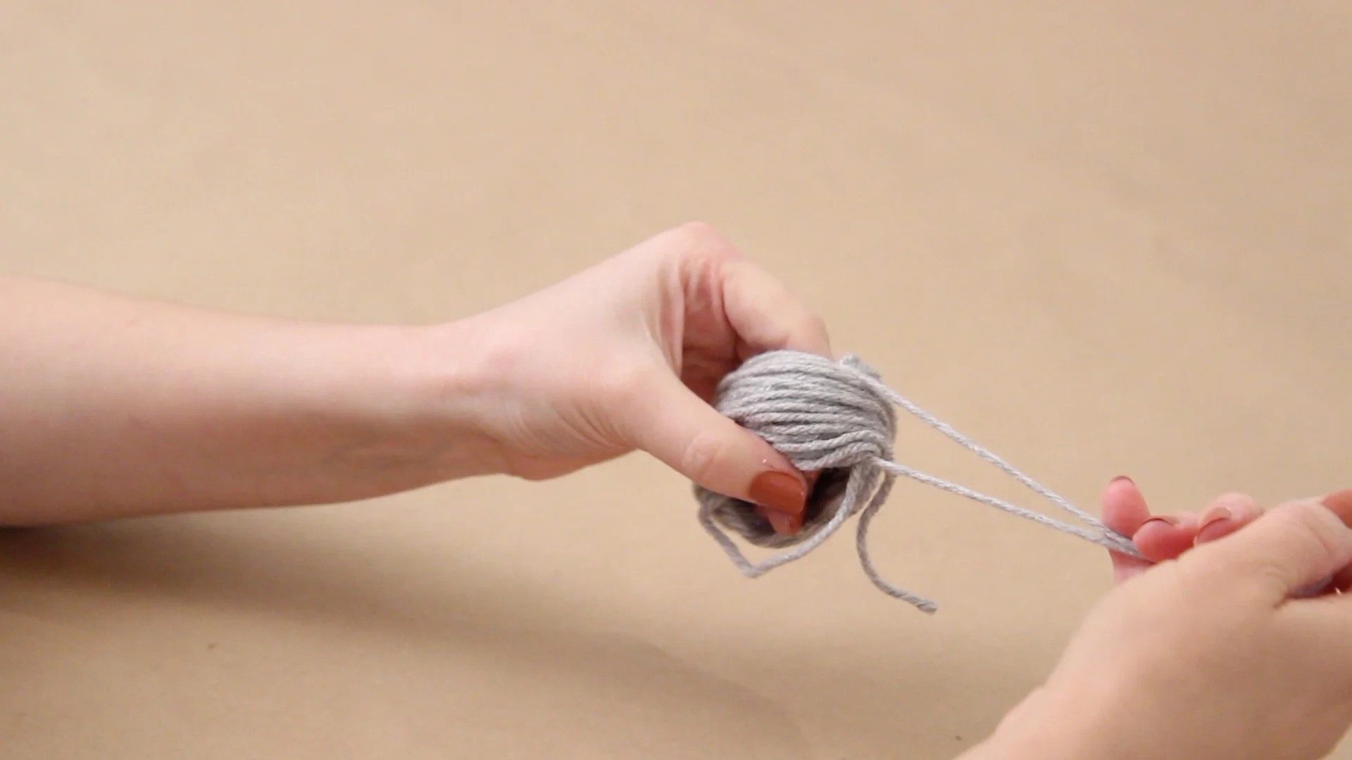 Cut yet another piece of yarn (last one, I promise!) and lay the tassel on top of it. Tie a double knot at the top of the tassel to create the rounded top.